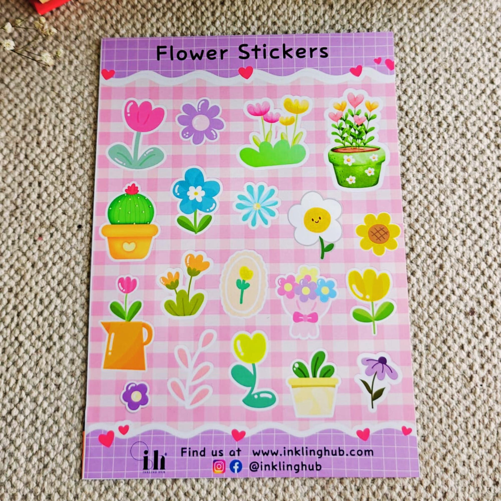 flower Sticker Sheet | Matte Lamination | Peel and Paste | Stickers For Laptop,Journal,Planner Bike,Scrapbook,diary | Waterproof | Self Adhesive | Residue Free