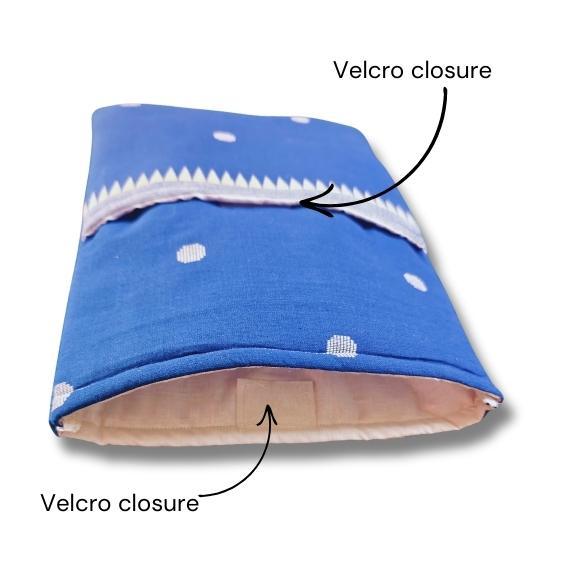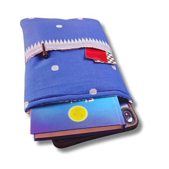 Handcrafted Blue Polka Dot Printed Book,Tablet,Ipad Sleeves | 100% Cotton Fabric , Multicolor | padded inner lining | Washable Foaming Sheet | Padded Book Sleeves/Book Covers/Book Protector – 8 Inch x 10 Inch
