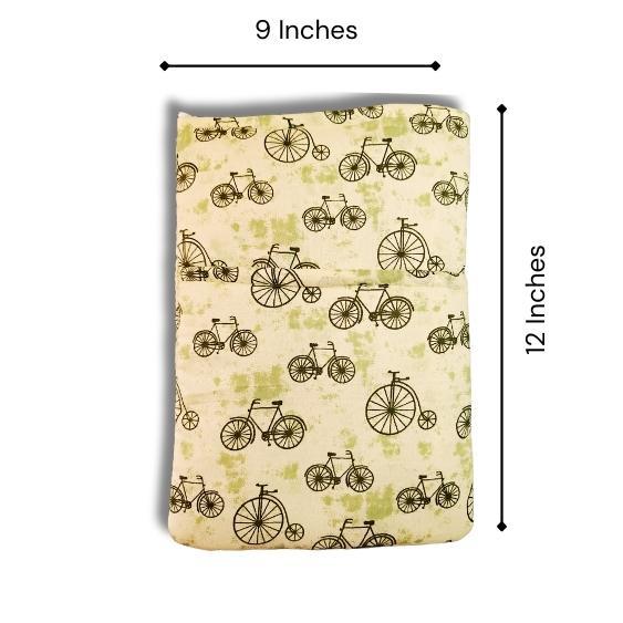 Handcrafted Cycle Printed Book,Tablet,Ipad Sleeves | 100% Cotton Fabric , Multicolor | padded inner lining | Washable Foaming Sheet | Padded Book Sleeves/Book Covers/Book Protector – 8 Inch x 10 Inch