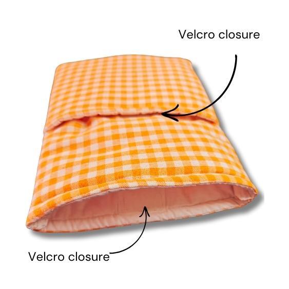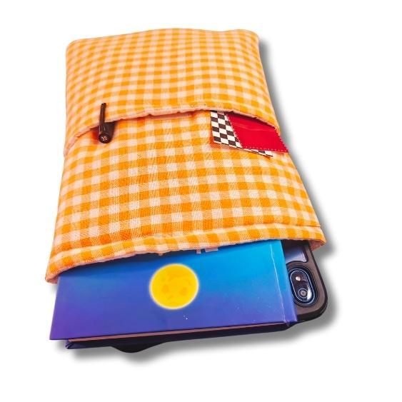 Handcrafted Orange Checkered Gingham Fabric Book,Tablet,Ipad Sleeves | 100% Cotton Fabric , Multicolor | padded inner lining | Washable Foaming Sheet | Padded Book Sleeves/Book Covers/Book Protector – 8 Inch x 10 Inch