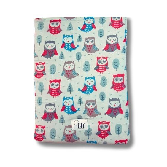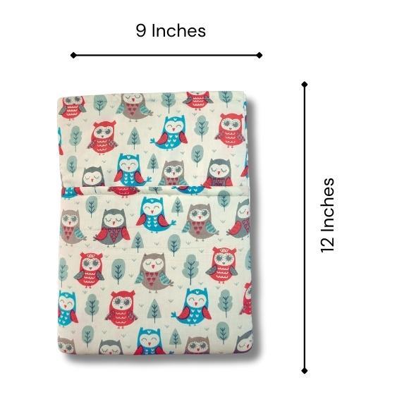 Handcrafted Owl Printed Book,Tablet,Ipad Sleeves | 100% Cotton Fabric , Multicolor | padded inner lining | Washable Foaming Sheet | Padded Book Sleeves/Book Covers/Book Protector – 8 Inch x 10 Inch