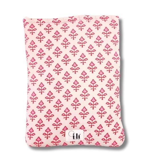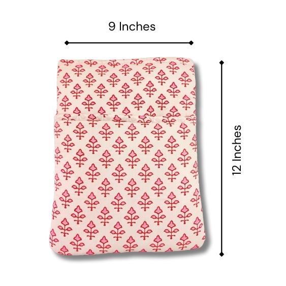 Handcrafted Pink Flower Printed Printed Book,Tablet,Ipad Sleeves | 100% Cotton Fabric , Multicolor | padded inner lining | Washable Foaming Sheet | Padded Book Sleeves/Book Covers/Book Protector – 8 Inch x 10 Inch