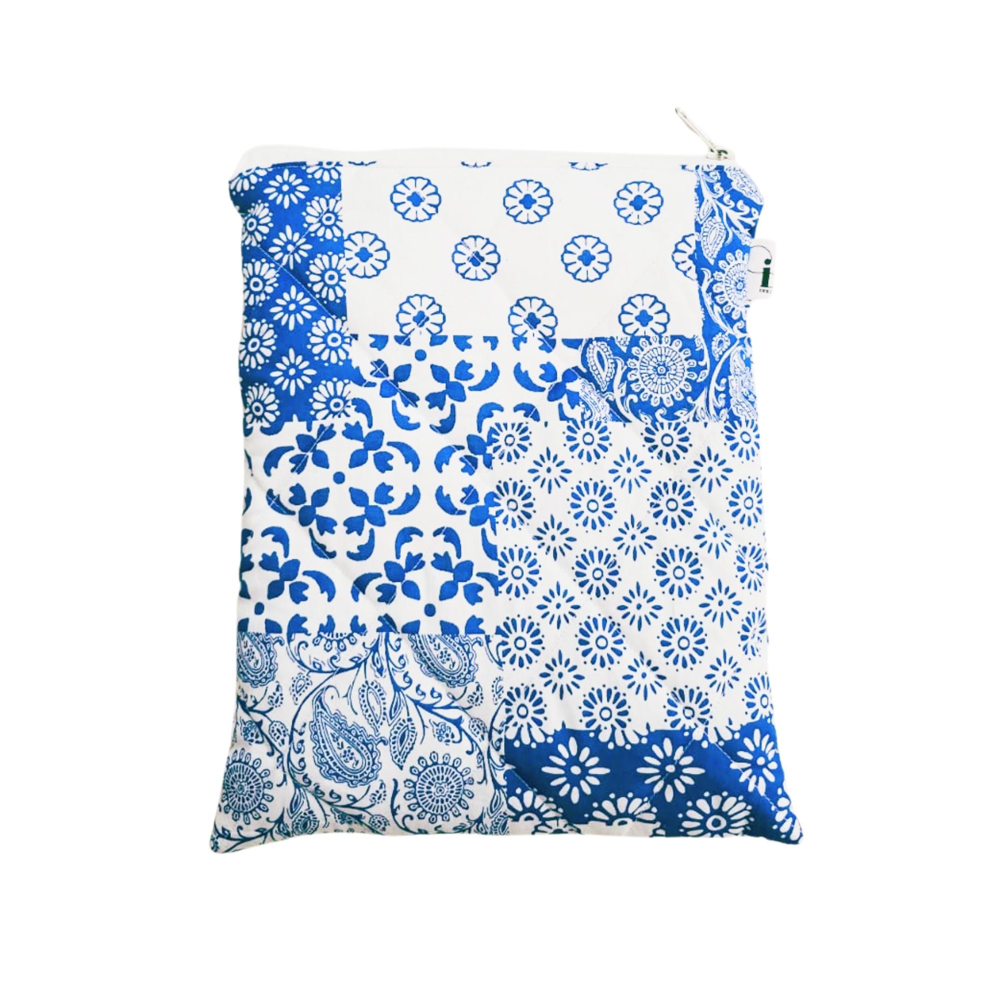 Handcrafted Quilted Blue Mandala Patchwork theme Printed 100% Cotton Fabric Book,Tablet,Ipad Sleeves | 100% Cotton Fabric , Multicolor | padded inner lining | Washable Foaming Sheet | Padded Book Sleeves/Book Covers/Book Protector – 8 Inch x 10 Inch
