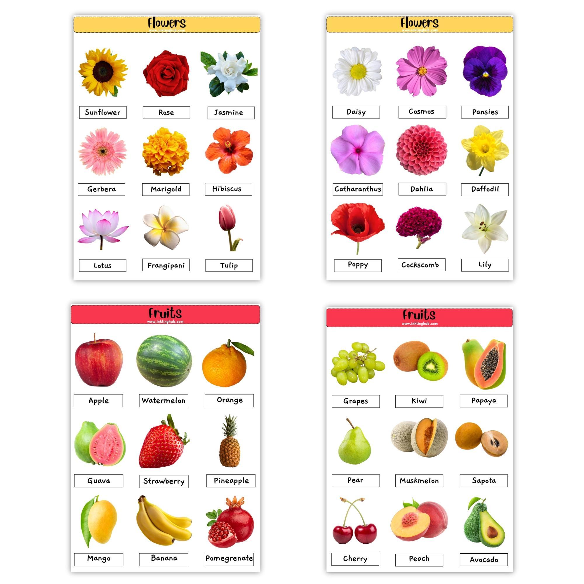 Project Stickers for Kids Project Pack Of 4 Sheets – Fruits And Flowers Stickers | School Project | Easy Peel & Paste | Glossy Lamination to prevent scratches Adhesive Sticker (36 Pcs)